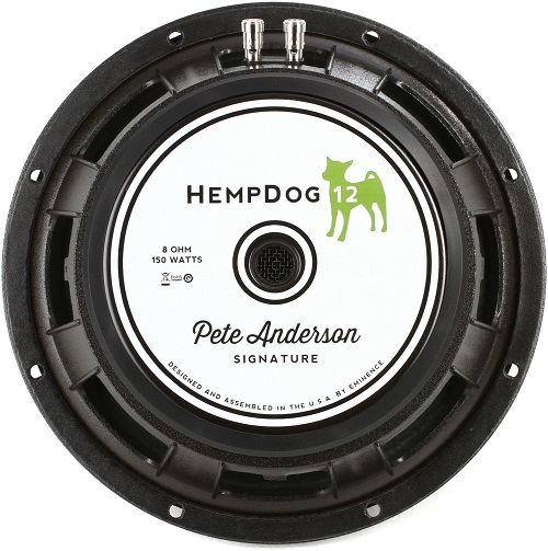 The Eminence HempDog 12 guitar speaker delivers a warm, neutral tone designed to cover all genres of music. With a cast aluminum frame and 102 dB efficiency, this is one heavy-duty driver capable of extreme output levels. Swamp Thang. 12" guitar speaker gives you classic American tone with a big bottom end.